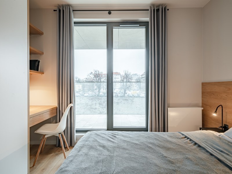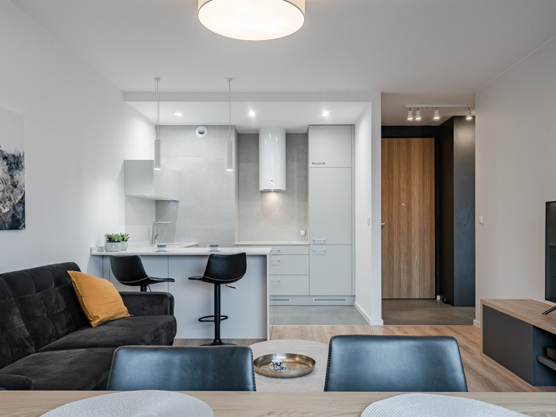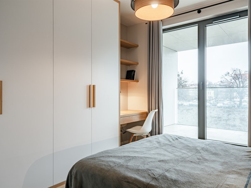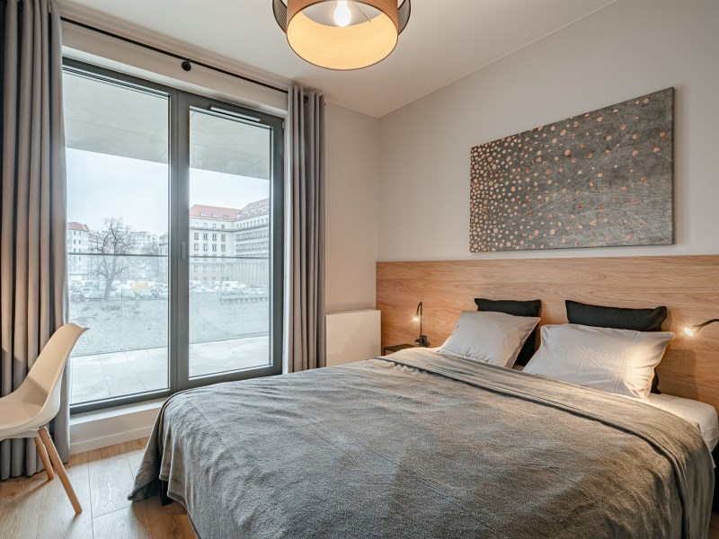 Apartament 2-pokojowy, o powierzchni 48mkw, na którą składają się przestronny salon połączony z aneksem kuchennym, komfortowa sypialnia, łazienka oraz przedpokój. Zarówno z salonu jak i z sypialni wyjście na taras gdzie przy blasku wschodzącego słońca można wypić pierwszą poranną kawę. Doskonale zaaranżowana przestrzeń zapewni komfort i funkcjonalność, którą przyszły Najemca doceni w codziennym użytkowaniu. Całość aranżacji dopełniają starannie dobrane dodatki i nastrojowe oświetlenie. Poczucie luksusu podkreślają imponujące przeszklenia i niepowtarzalny widok na szerokie zakole rzeki Odry oraz obsadzony platanami Bulwar Fizyków.