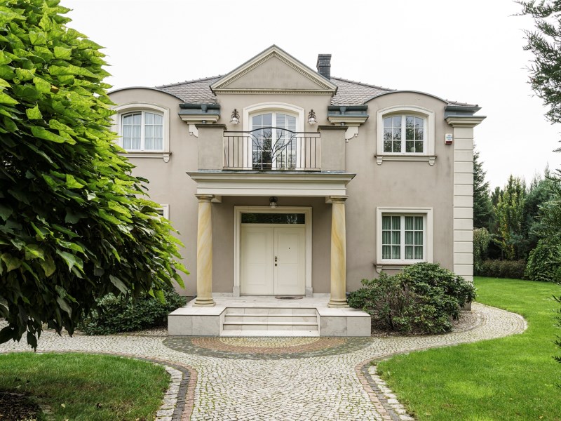 Dom stoi przy jednej z cichych uliczek tworzących kameralną enklawę domów jednorodzinnych.