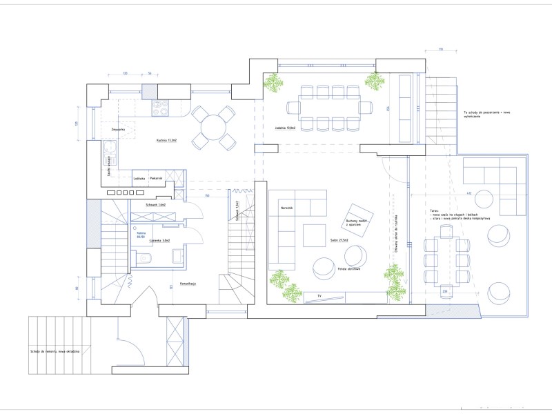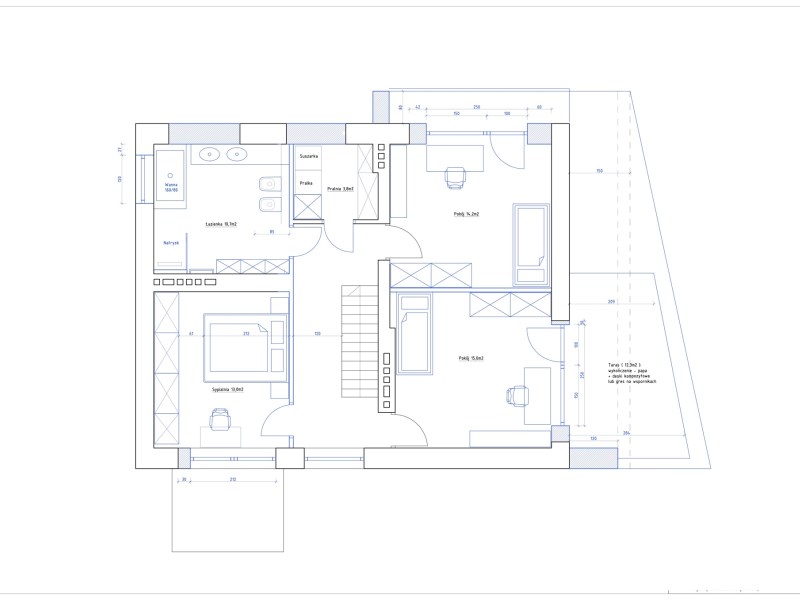 Nieruchomość wyróżnia się dużym potencjałem do rearanżacji lub przebudowy – istnieje gotowa koncepcja architektoniczna rozbudowy, co daje szerokie możliwości dostosowania do współczesnych potrzeb.