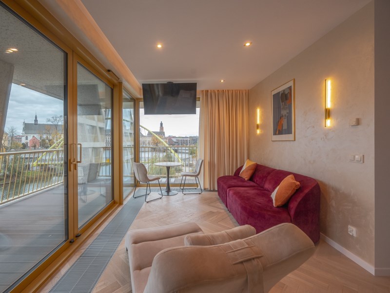 Z przyjemnością prezentujemy Państwu nowe 2-pokojowe, w pełni wyposażone mieszkanie w nowoczesnym budynku w samym sercu Wrocławia. Lokal o powierzchni ok. 50 m² z ogromnym tarasem (ok. 30 m²) i zapierającym dech w piersiach widokiem na Odrę, Uniwersytet Wrocławski, Most Uniwersytecki i Wyspę Słodową.