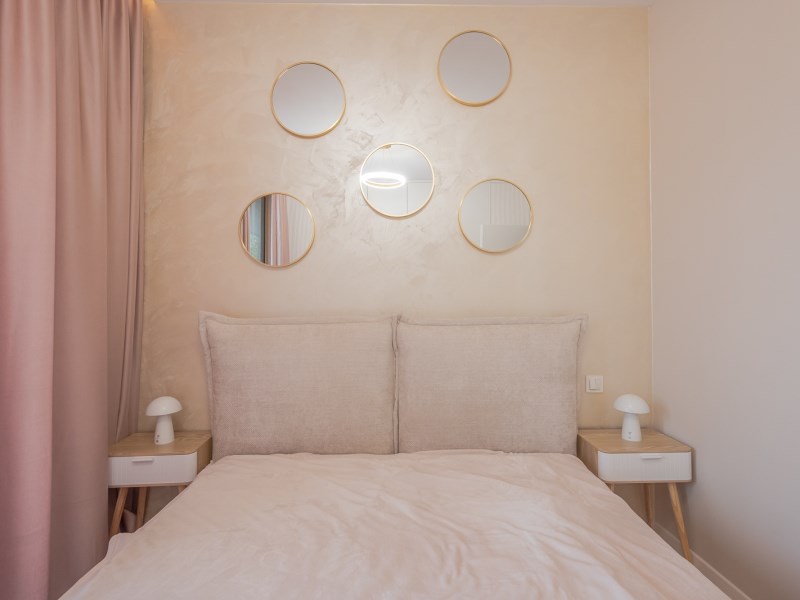 – sypialnia z dużym łóżkiem i pojemną szafą,