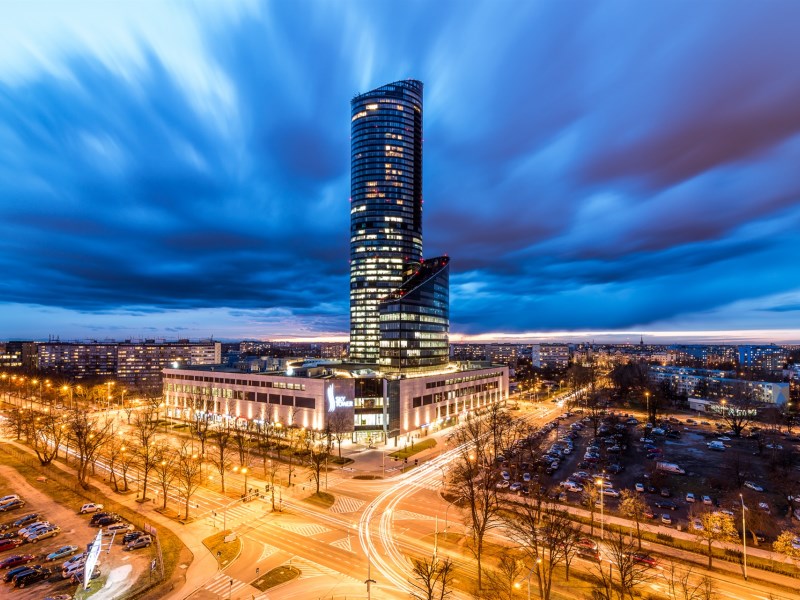 Kompleks Sky Tower to symbol nowoczesnego Wrocławia – miejsce, które łączy funkcjonalność biura z wyjątkowym prestiżem i rozpoznawalnością.